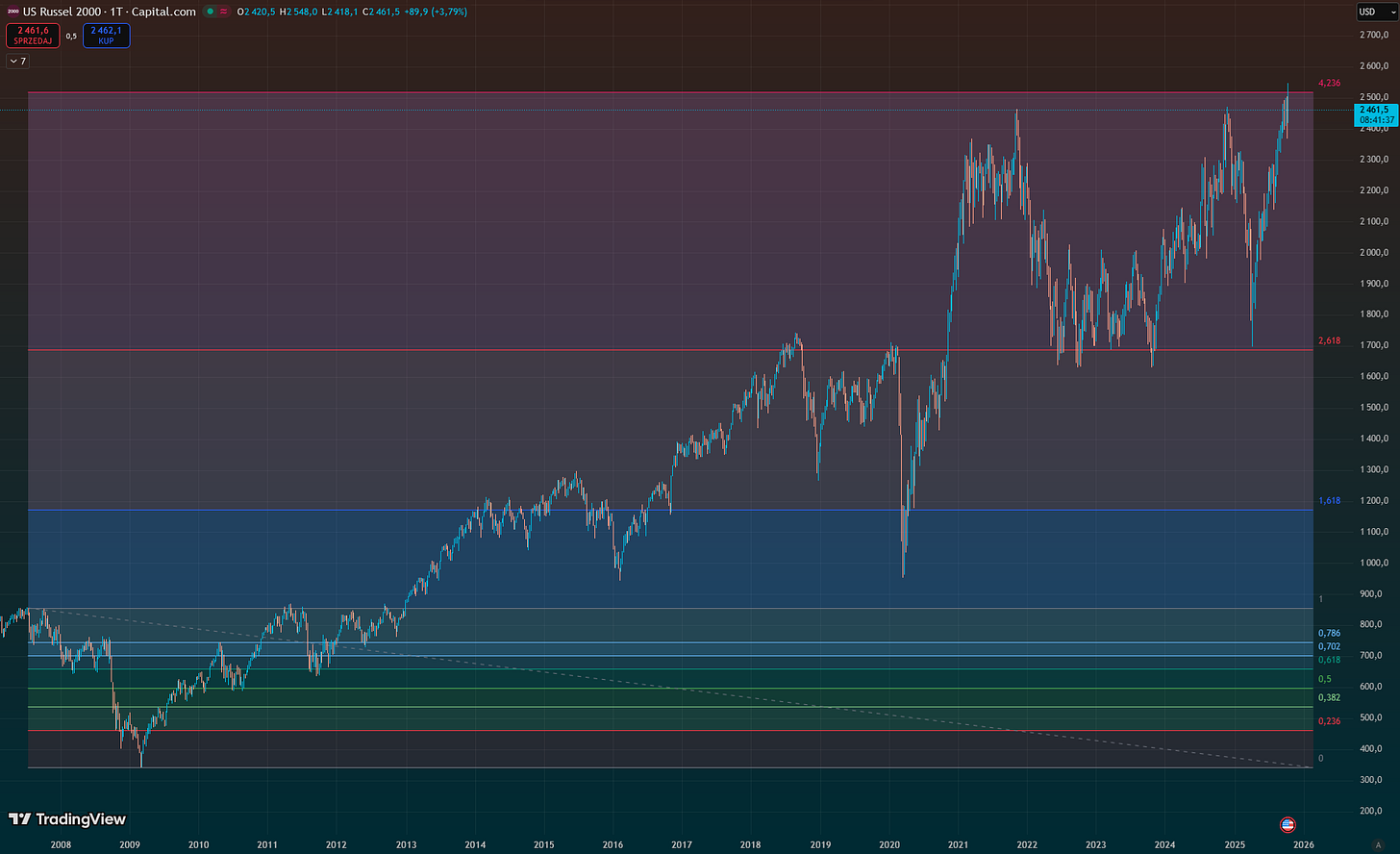 A fun scenario to think about now is Bitcoin doing a 0.702 retrace, altcoins making one last rally (most won’t set new ATHs, just like before and like now), while RTY does a fakeout on the 4.236—and boom, the bear is at your front door.