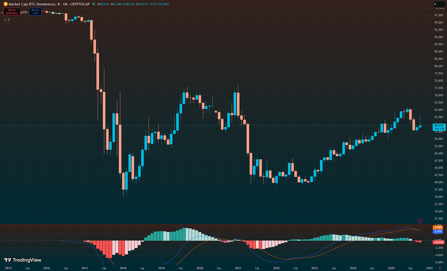 Anything more for Bitcoin would be an anomaly. But there’s a catch: dominance has started falling.